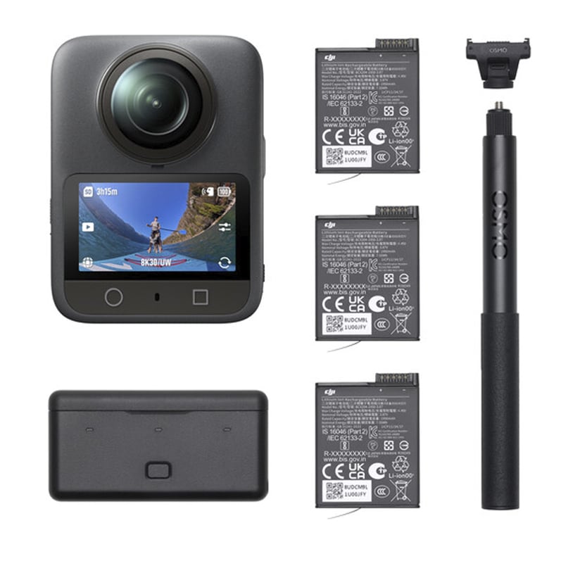 El DJI Osmo 360 Adventure Combo es una poderosa y ultracompacta cámara de acción que te permite capturar videos de 360° con calidad cinematográfica y fotos en 8K. Esta cámara, una adición destacada a la línea Osmo, ofrece dos lentes y un gran sensor de 1″ para un rendimiento excepcional incluso en condiciones de poca luz. El Adventure Combo es la herramienta ideal para aventureros y creadores de contenido en Venezuela, e incluye un palo selfie de 1,2 m, un adaptador de liberación rápida ajustable y un estuche de batería multifuncional.