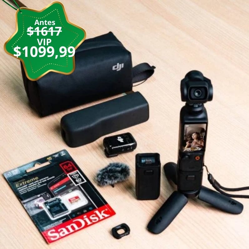 El Osmo Pocket 3 Creator Combo de DJI es un completo kit de producción móvil y de estudio que incluye todo lo necesario para capturar videos y sonidos estables y suaves. Este versátil sistema incluye el DJI Osmo Pocket 3 con accesorios como un objetivo gran angular, un asa de batería con una batería recargable integrada de 950mAh, un mini trípode, un transmisor DJI Mic 2, una pantalla antiviento y un clip magnético para una adquisición de audio profesional. Todo se puede almacenar y transportar desde y hacia el lugar de rodaje con la bolsa de transporte incluida para el Osmo Pocket 3.