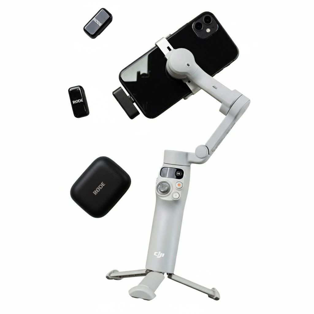 Convierte tu smartphone en una estación de producción profesional con este combo potente y portátil. El DJI Osmo Mobile 7 ofrece estabilización de 3 ejes y seguimiento inteligente ActiveTrack 7.0 para tomas fluidas, mientras que el sistema RODE Wireless Micro captura audio nítido y envolvente sin cables ni complicaciones.