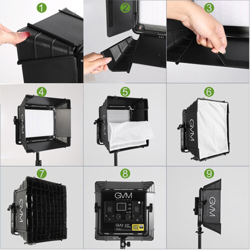 El kit de difusores softbox 1000D plegables con rejilla tipo colmena para serie GVM 880RS es compatible con los paneles de iluminación LED de la serie 880RS de GVM. Reduce el contraste de los LED brillantes, crea sombras y una luz suave. Es ideal para retratos y fotografía de productos, iluminación de vídeo, fotografía en exteriores, exhibiciones de moda y de productos.