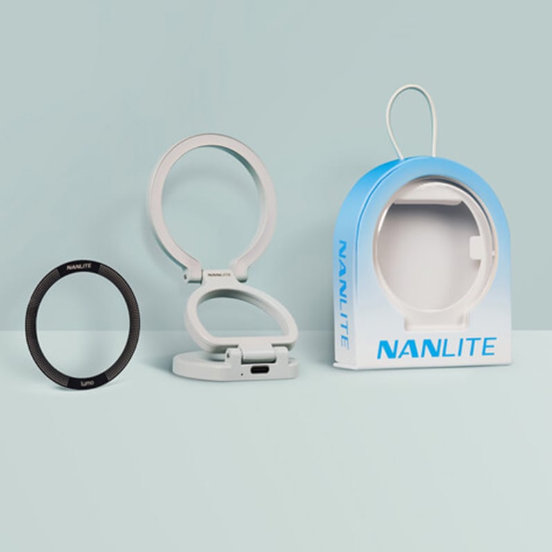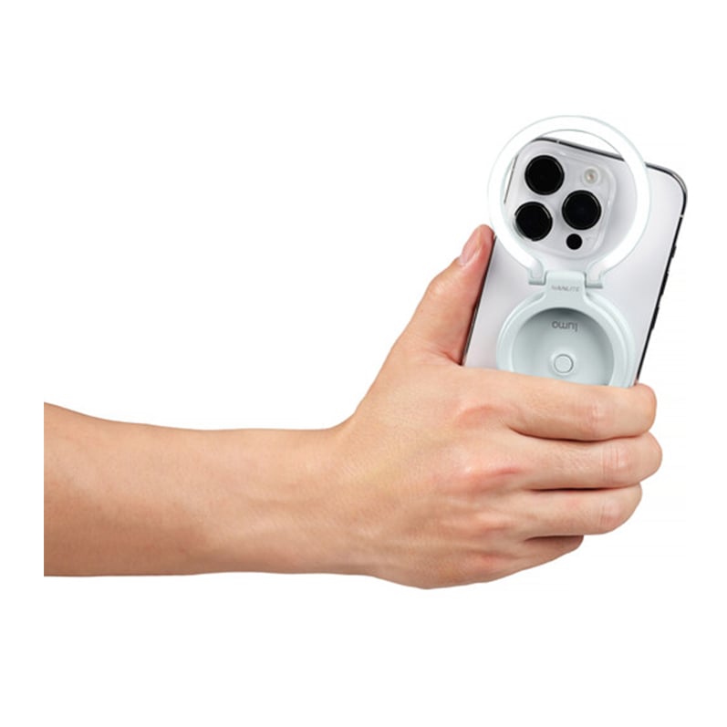 El Nanlite Lumo Mint Blue es un aro de luz LED bicolor diseñado para creadores de contenido que utilizan smartphones. Su diseño compacto y versátil permite usarlo como fuente de luz, soporte de teléfono o empuñadura estabilizadora, ideal para vlogs, selfies, videollamadas, reels o grabaciones en exteriores.