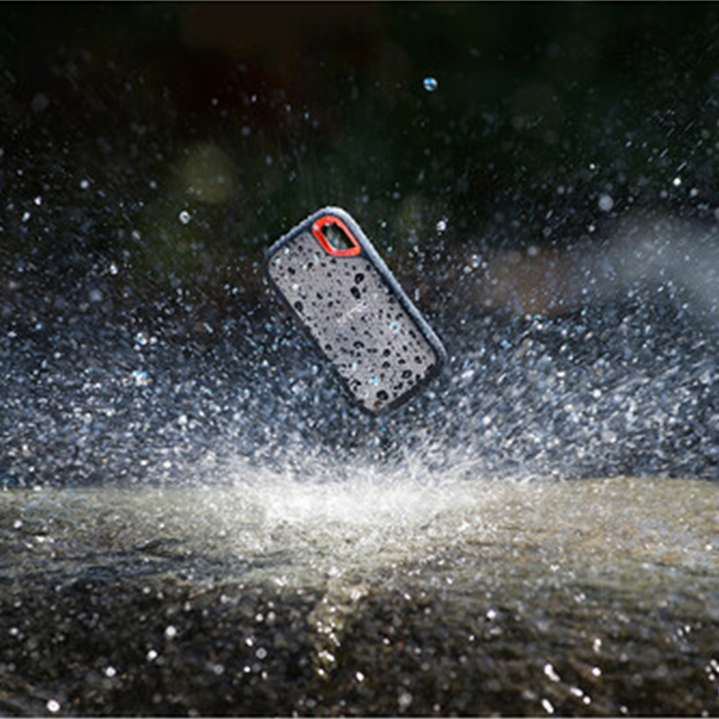 Su carcasa de silicona texturizada ofrece agarre seguro y resistencia a impactos. Certificada con IP55, soporta agua, polvo y caídas de hasta 2 metros, ideal para entornos exigentes como exteriores, estudios móviles o viajes. El diseño incluye gancho para mosquetón, facilitando el transporte en mochilas o correas.