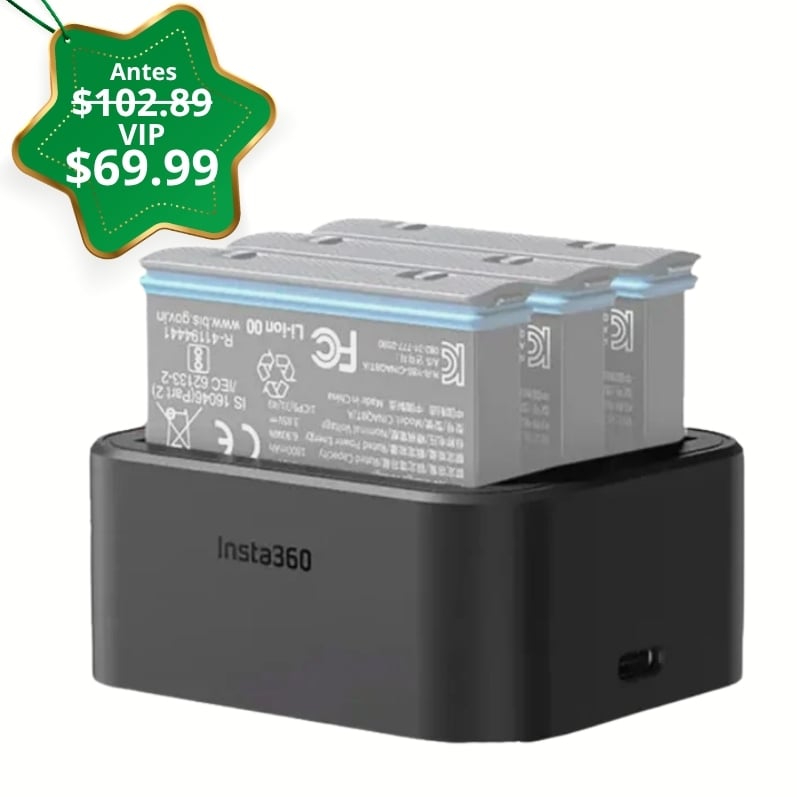 La versatilidad del Cargador de insta360 x3 de carga rápida se combina con la comodidad gracias al puerto de carga USB-C, que no solo es eficiente sino también inteligente. La protección contra sobrecargas asegura una gestión de carga segura y confiable, prolongando la vida útil de tus valiosas baterías.