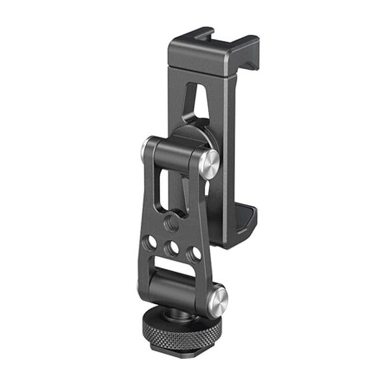 El SmallRig 4382 es un soporte metálico articulado para smartphone, diseñado para creadores de contenido que integran su teléfono en rigs de cámara, trípodes o setups híbridos. Su diseño compacto y robusto permite montar el teléfono como monitor externo, cámara secundaria o fuente de grabación vertical para redes sociales.
